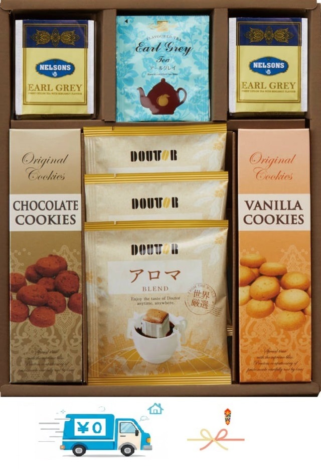 商品名:ドトールコーヒー ギフト セット DKU-BEA 送料無料 コーヒーギフト おしゃれ ギフトドリップコーヒー アールグレイ紅茶ティーバッグ クッキー詰め合わせ 内祝い お返し 出産 結婚 挨拶 お礼 グルメ ドトール ■「ドトールコーヒー ギフト セット」は、薫り豊かなドリップコーヒーとアールグレイ紅茶、さらにクッキーの詰め合わせが楽しめる贅沢なギフトです!おしゃれで洗練されたセットは、特別な日の贈り物としても、大切な方への感謝の気持ちを伝えるアイテムとしても最適です。 【多彩な香りと味わいを楽しむ】: ●ドリップコーヒーは、毎日の朝食やおやつにぴったり。上質な豆を使用し、豊かな風味を引き出しました。 ●アールグレイ紅茶は、華やかな香りとさわやかな味わいが特徴で、リラックスタイムに最適です。 ●さらに、クッキーのほんのりとした甘さが、飲み物との相性抜群です。 【広がるギフトシーン】: ●出産や結婚の内祝い、快気祝い、法要の引き出物など、さまざまなシーンで喜ばれること間違いなし。 ●家族や友人との特別な時間に、心温まるひとときを提供します。自宅でのリラックスタイムやちょっとした贅沢を楽しむのにもぴったりです。 【便利な送料無料サービス】: ●このギフトセットは、送料無料でお届けしますので、気軽に贈り物としてご利用いただけます。 ●大切な方への贈り物として、自分へのご褒美としても楽しめるのが魅力です。 【美味しさと一緒に感謝の気持ちを】: ●「ドトールコーヒー ギフト セット」は、贅沢なコーヒー体験で日常を素敵に彩ります。大切な人とのコミュニケーションのきっかけにもなる、このギフトは、贈る側からも受け取る側からも喜ばれる特別な存在です。 ■今すぐ「ドトールコーヒー ギフト セット」を手に入れて、豊かな香りと味わいの世界にふれてみてください!特別な瞬間を演出してくれることでしょう。 【商品詳細】 【パッケージサイズ】 230×38×285mm 【内容】 ドトールドリップコーヒーアロマブレンド×3、アールグレイ紅茶ティーバッグ×17(2種)、チョコクッキー:30g・バニラクッキー:30g×各1 【アレルゲン】 卵・小麦・乳 【生産国】 日本、スリランカ 【パッケージ形態】 化粧箱入 ◎「ドトールコーヒー ギフト セット」で、あなたの大切な瞬間をお祝いし、特別な体験をお届けしましょう!
