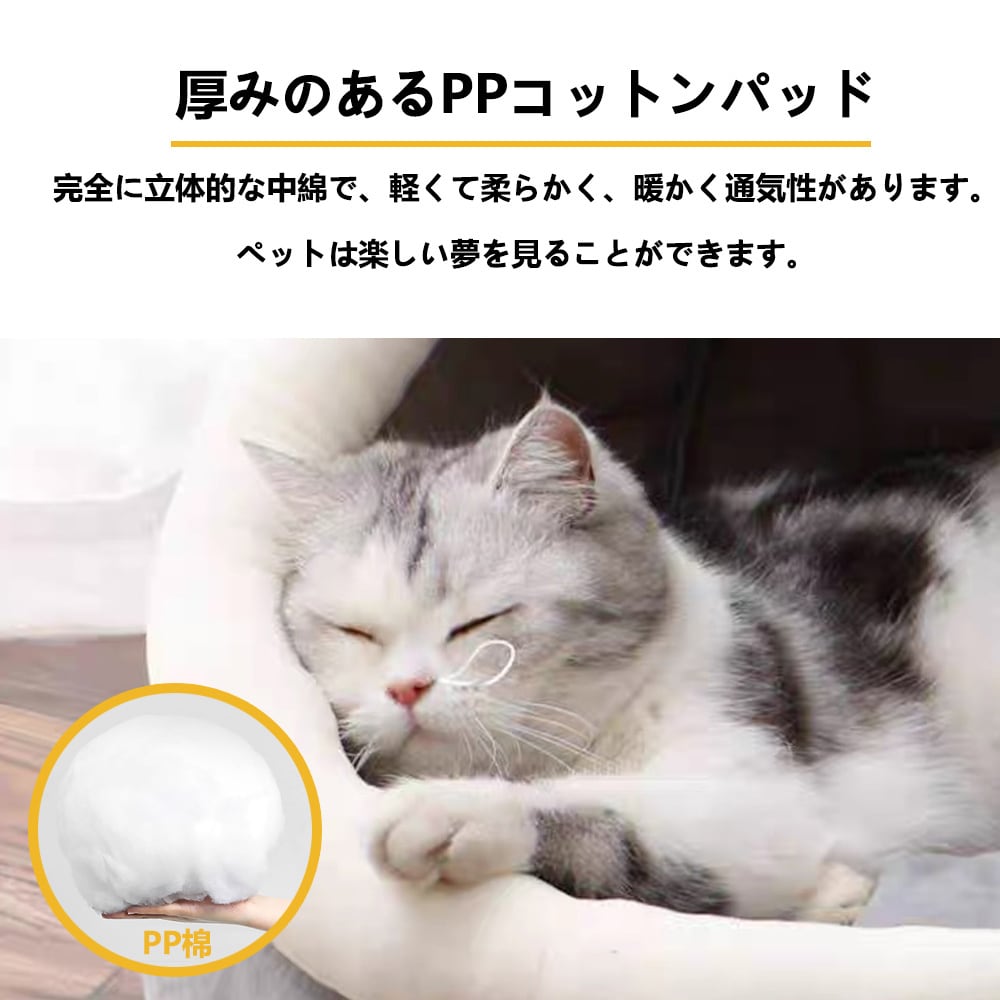 【洗える便利さ】: ペットのベッドは、清潔さが大切!この猫ハウスは簡単に洗える仕様となっているため、トリムやお手入れが楽に行えます。いつでも清潔な環境を保って、ペットに快適なスペースをご提供します!