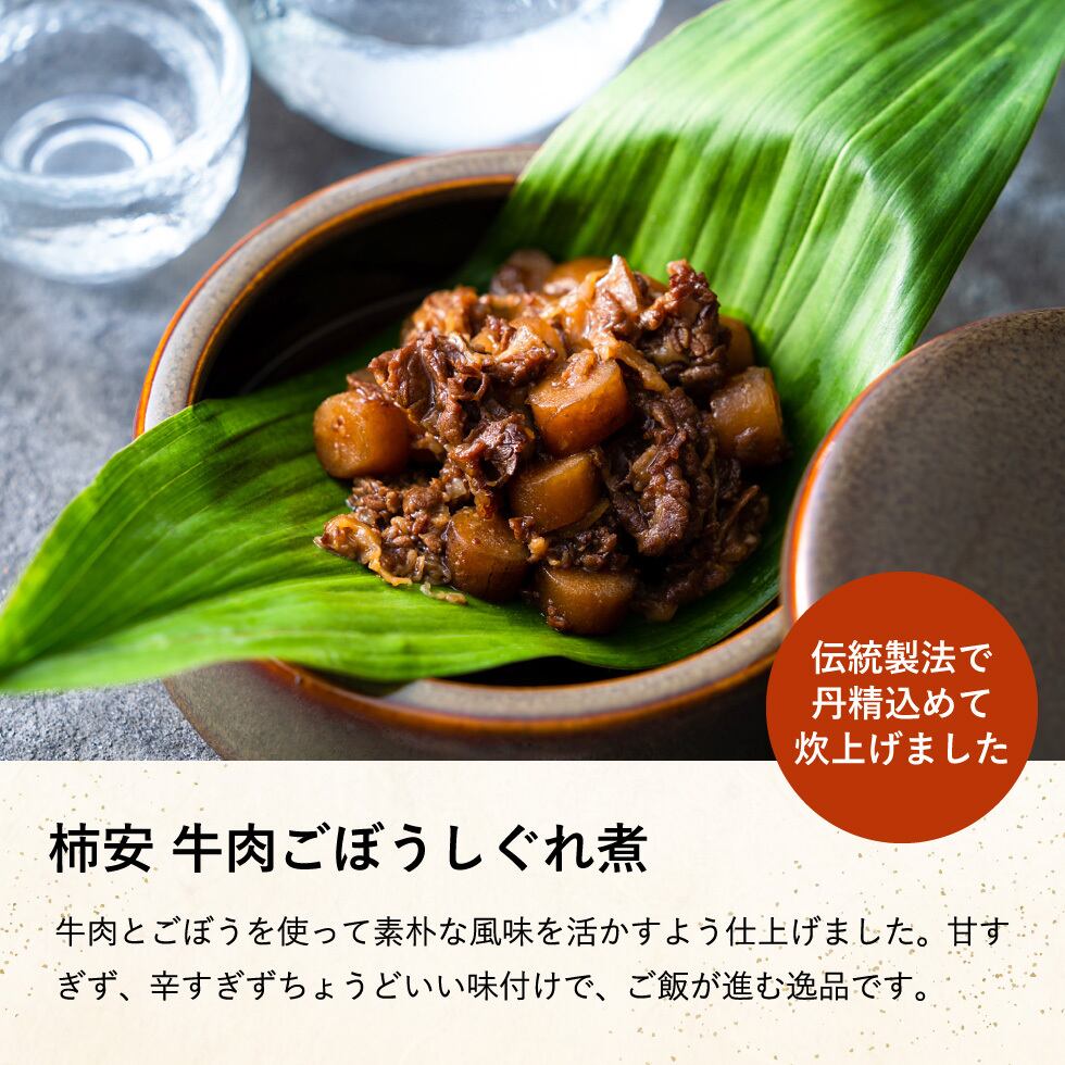 牛肉ごぼうしぐれ煮:牛肉(国産)、ごぼう、しょうゆ、砂糖、みりん風調味料、還元水あめ/増粘剤(加工デンプン、増粘多糖類)、酸味料、調味料(アミノ酸等)、(一部に小麦・牛肉・大豆を含む)
