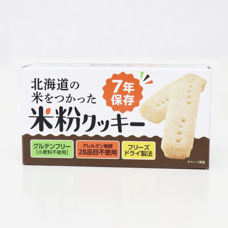 ■長期保存可能な「北海道のお米を使った米粉クッキー」は、7年の保存が可能な非常食として、安心の備蓄食品です!アレルゲン物質28品目不使用で、安心してお召し上がりいただけるため、家族みんなで楽しめるアイテムです。