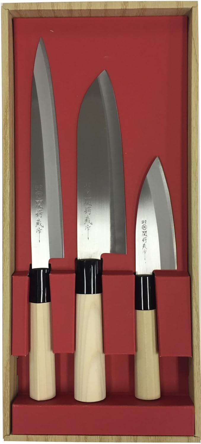 商品名:関鍔蔵作 包丁 3本セット 三徳包丁・刺身包丁・小出刃包丁 初心者向け 和包丁 魚 捌き ステンレス製 30045