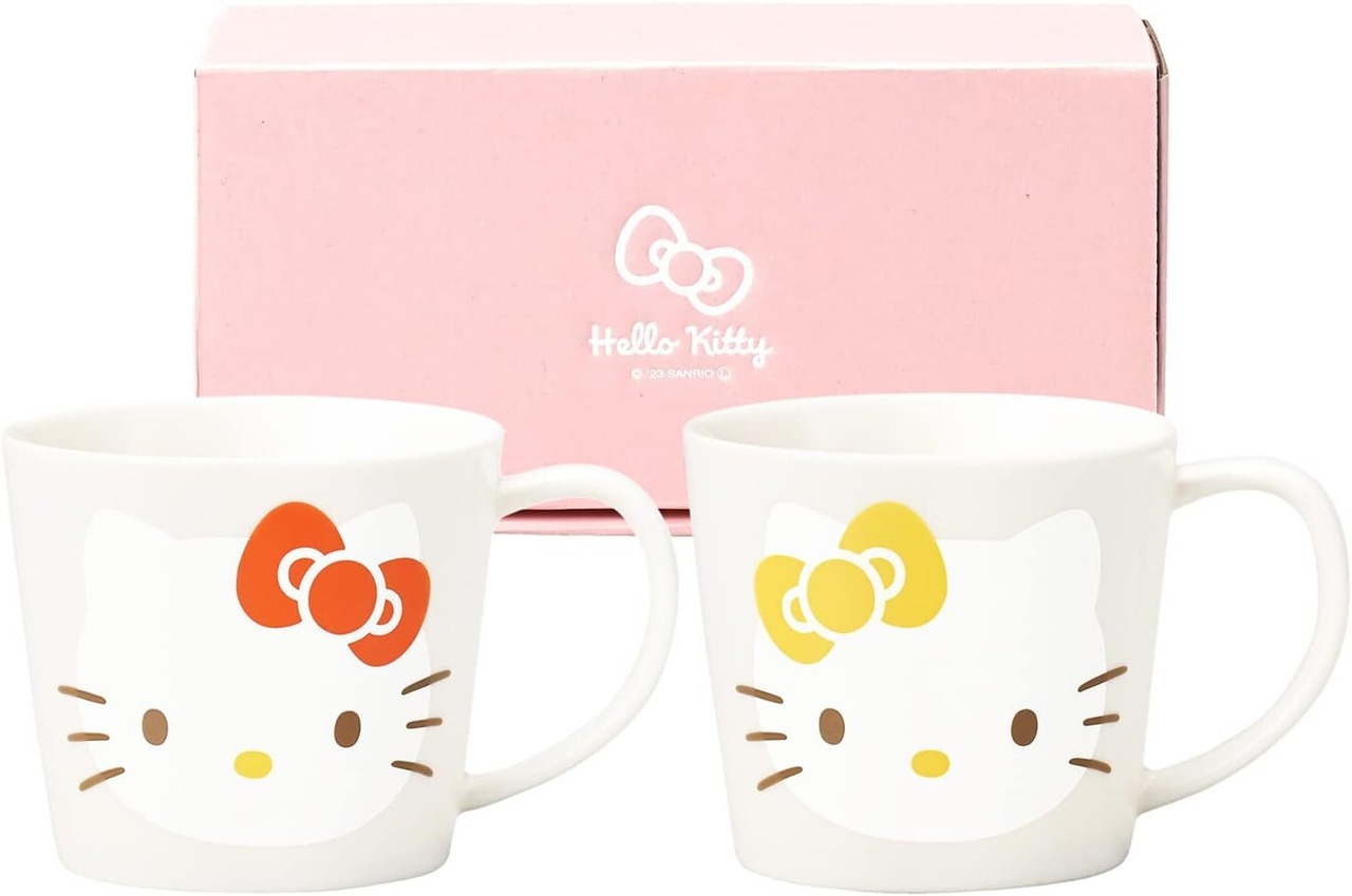 ■「ハローキティ キティ & ミミィ ペアマグ」は、キティとその双子の妹、ハローミミィのかわいらしさをそのままデザインしたマグカップのセットです!シンプルで愛らしいフェイスデザインが、毎日のティータイムを特別なものにしてくれます。