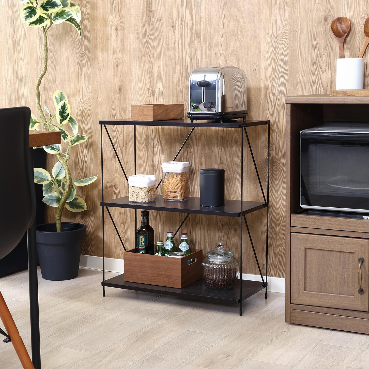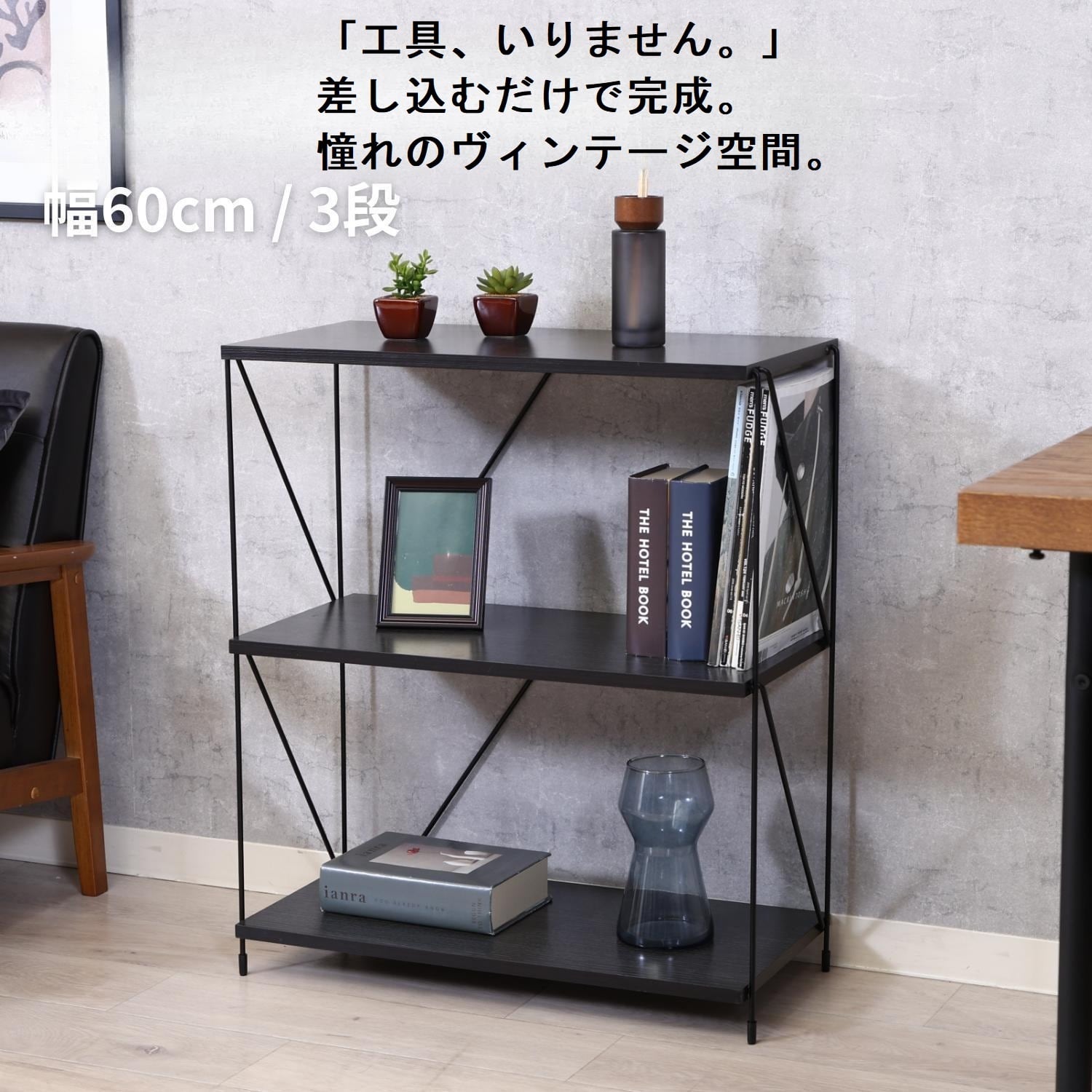 オープンラック 3段 幅60 EZBO ワイヤーラック 奥行30 工具不要 差し込むだけ 簡単組み立て シェルフ 棚 スチールラック 収納棚 おしゃれ 木目調 スリム A4対応 キッチン リビング 寝室 ブラック 黒 ユニットラック ディスプレイラック | 心地良い暮らしの雑貨 アビアント