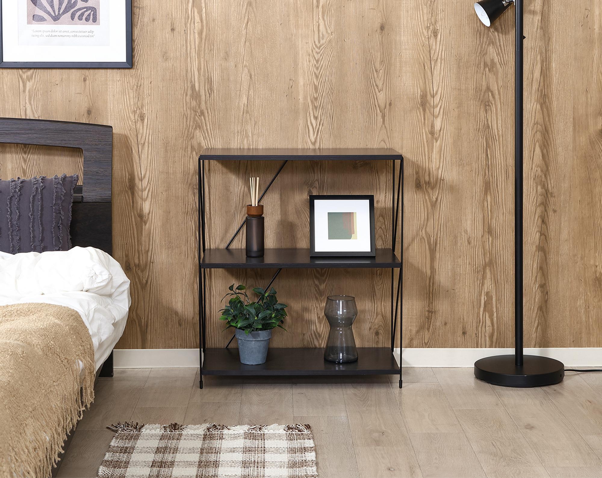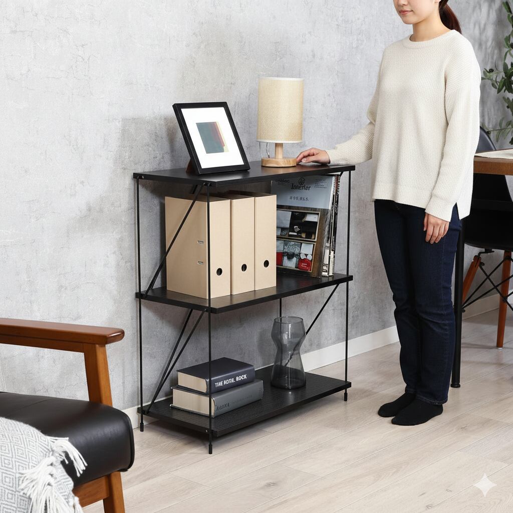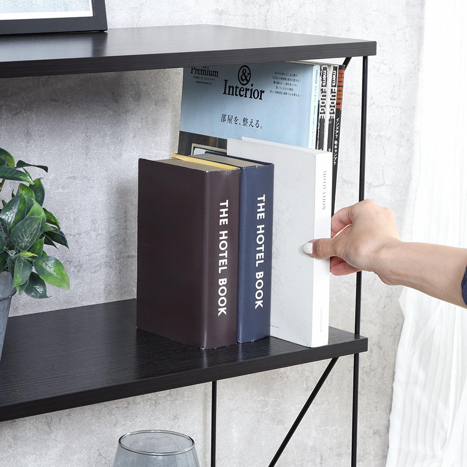 ●ブラックのスチールフレームと木目調の棚板の組み合わせが、おしゃれな雰囲気を醸し出します。また、シンプルでありながら存在感のあるデザインが、お部屋のアクセントにぴったりです。