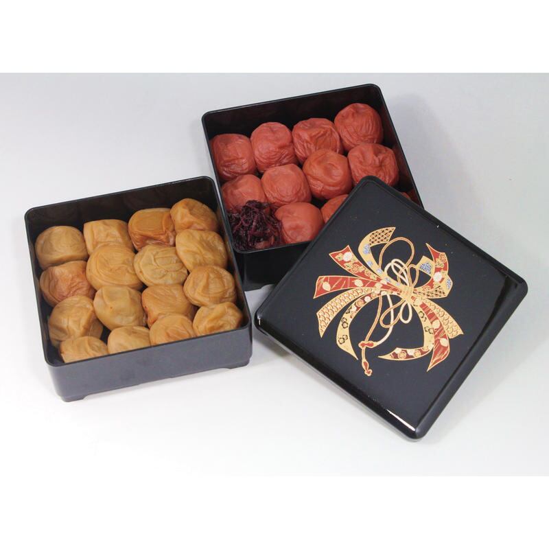 しそ梅(塩分12%)250g・はちみつ梅(塩分8%)250g×各1、合成漆器二段重入り
